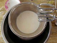 4.淡奶油加入剩于糖,隔冰水低速打至六分发流动状态。