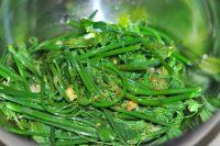 2.锅里烧开水,滴入2滴油、一点点的盐。将南瓜苗焯至断生。放入冰水中浸泡一下。
