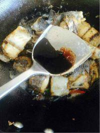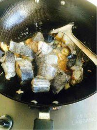 4.油锅倒适量油,把葱姜蒜爆香,把鱼放进去,煎一会